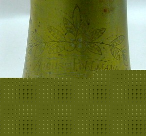 | Instrument - Alto Horn Museum Number - AH010 Maker - August Pollman Model - Artist Date of Manufacture - 1885 ID # - none Surface - raw brass Markings - name in upside down on bell: August Pullman, N Y LP, Eb upright modified valves, ornate ferrules Historical Detail - Pollmann operated in New York City 1880 to 1905. Was in partnership with GR Martin and JH Martin in 1872 and was known as Martin Pollmann & Co. From 1880 as August Pollman |