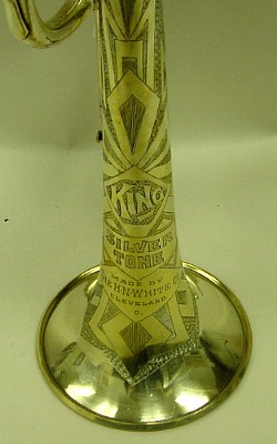 | Instrument - Cornet Museum Number - CO116 Maker - H. N. White Model - Silver Tone - Long Model Date of Manufacture - 1934 ID # - 167278 Surface - Sterling Silverb Bell and Silver Plate Markings - Historical Detail - White established in 1895 with C H Berg as White and Berg by 1894 was in collaboration with the trombonists Thomas H. King, by 1909 were were producing a full line of King instruments. 1925 purchased Cleveland Musical Instruments. Trade names: American Standard, Gladiator, Liberty, Master Model, Silver Tone. By 1940 250,000 were produced. |