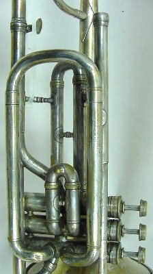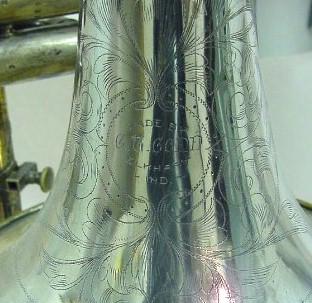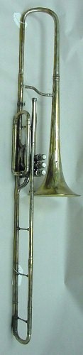 | Instrument - Trombone Museum Number - TB085 Maker -C. G. Conn Model - Valve Date of Manufacture - 1912 ID # - 129289 Surface - Silver plate Markings - Made by C G Conn, Gold wash on inside bell, friction lock with turn screw Historical Detail - Established by Charles Gerard Conn, invented a rubber rim mouthpiece in 1874 and in 1876 established Dupont-Conn. By 1879 known as C. G. Conn & Co and bought Fiske in 1887 and operated this Worcester MA plant until 1898. In 1917 had a work force of 550 and an output of 2500 instruments per month.. |