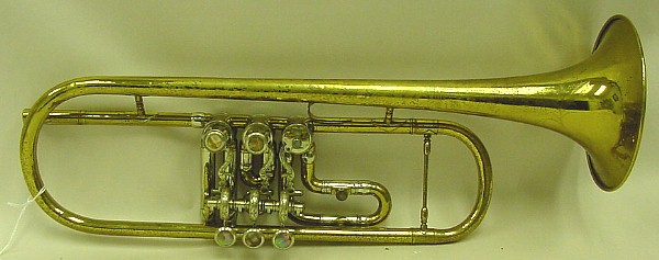 | Instrument - Trumpet Museum Number - TR069 Maker - Tito Belati Model - 3 Rotary valves Date of Manufacture - pre 1900 ID # - none Surface - laq brass Markings - Pergugia Italy Historical Detail -Tito Belati operated in Perugia Italy during the second hald of the 19th centruy |