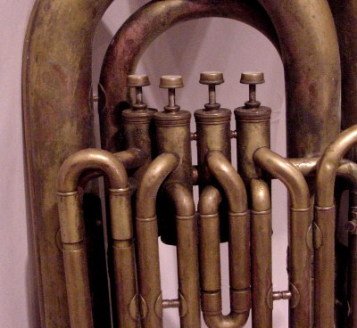 | Instrument - Tuba Museum Number - TR039 Maker - C. Mahillon Model - BBb 4 valve Date of Manufacture - 1920s ID # - none Surface - raw brass Markings - C. Mahillon Brussels, Belgium, has a symbol of a 6 pointed star, since 1836, spring water key Historical Detail - Mahillon was the major maker in Belgium untill 1836 to 1935. Firm founded by Charles Borromee and was first known as Bachmann & Mahillon in 1836. |