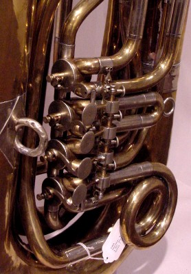 | Instrument - Tuba Museum Number - TU040 Maker - V. F. Cerveny Model - BBb - 4 Rotary Valves Date of Manufacture - 1880's ID # -7426 Surface - Brass Markings - Medaille D'Or, KonigGratz, Sole Agent for United States, Louis Vitak, Canton OH Historical Detail - The company operated at this location 1842 to 1946. Established by Vacla Frantisek Cerveny in 1842, In 1859 had a workforce of 80, opened branch in Kiev in 1867. If 1867 went into partnership with his sons Jaroslav and Stanislav and was known as V F Cerveny & Sohne. Joined by other sons Bohumil and Vaclav. 1891 had a work force of 100 and produced 6000 instruments for the Russian Army in 1895. In 1907 known as GmbH. The firm was nationalized in 1946. |
